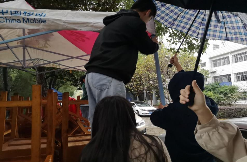 10月20日,为了更好开展九江学院第二十届运动会的各项工作,团委青志部、体育部与入党积极分子,在权益部的部署安排下,对我院运动会期间大本营进行布置,他们从文友楼搬桌椅和帐篷到外场,接着认真布置场地、打扫卫生,做足充分准备,在此期间即使突发小雨也没有磨灭他们的工作热情,充分展现了计算机学子的优良精神风貌。