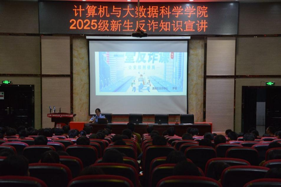 为增强学生防范电信网络诈骗意识,筑牢校园安全防线,9月22日,计算机与大数据科学学院联合市公安局反诈中心,在香远楼报告厅开展反诈知识宣传活动。反诈中心李警官担任主讲,通过案例剖析、互动问答等形式,为同学们带来一堂生动实用的防诈安全教育课。