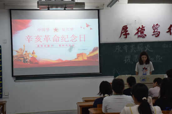 活动伊始,团支书以“历史为何铭记辛亥革命”为切入点,通过PPT展示了辛亥革命的时代背景、关键事件与重要人物。从武昌起义的枪声到各省宣布独立,一张张历史图片、一段段文字解读,让同学们直观感受到辛亥革命“敢为天下先”的勇气与“救亡图存”的担当。此外,团支书还鼓励同学们将辛亥革命精神融入日常学习生活,既要铭记历史、心怀家国,也要脚踏实地、勇于实践,同学们深表赞同。